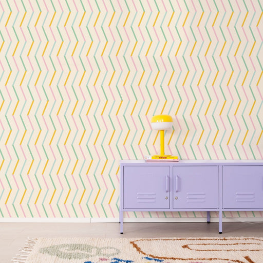 View full detailsCreate a fun ice-cream inspired striped half wall with our self-adhesive wallpaper. Just peel, stick, and witness the magic unfold! The striped sc...